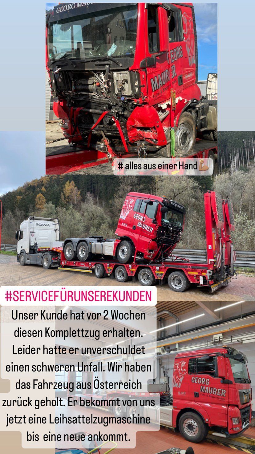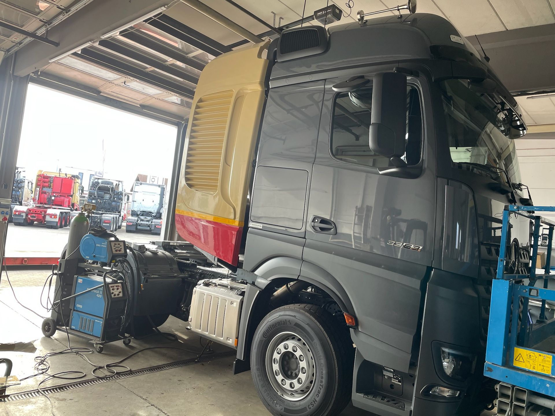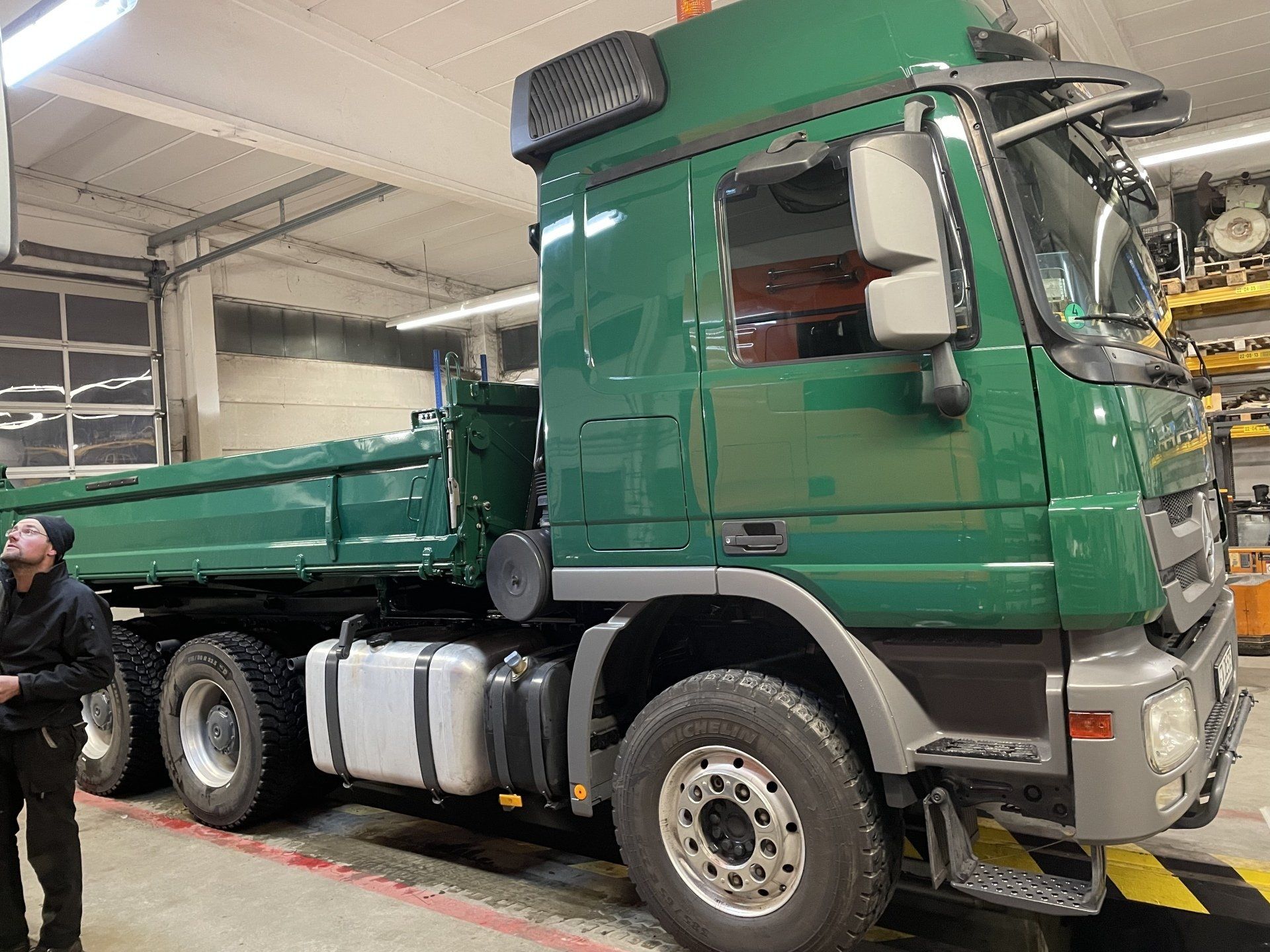 Na ovu tegljačku jedinicu ugrađena je Meiller kiper karoserija. Da bi se to postiglo, trebalo je izravnati okvir, ukloniti sedlo i postaviti spojku za prikolicu s opterećenjem prikolice od 80 t.